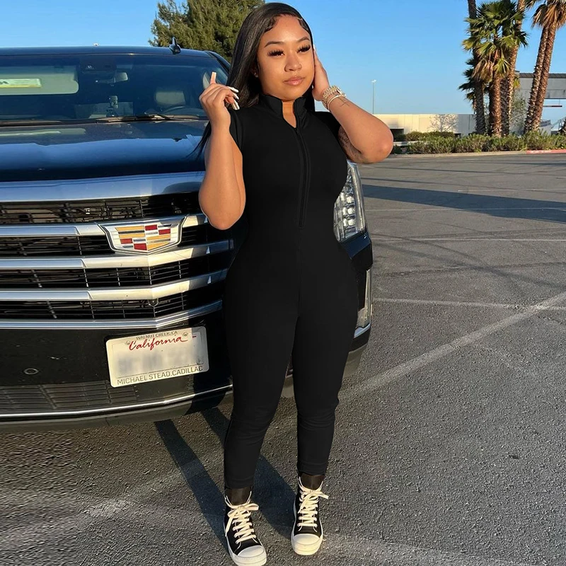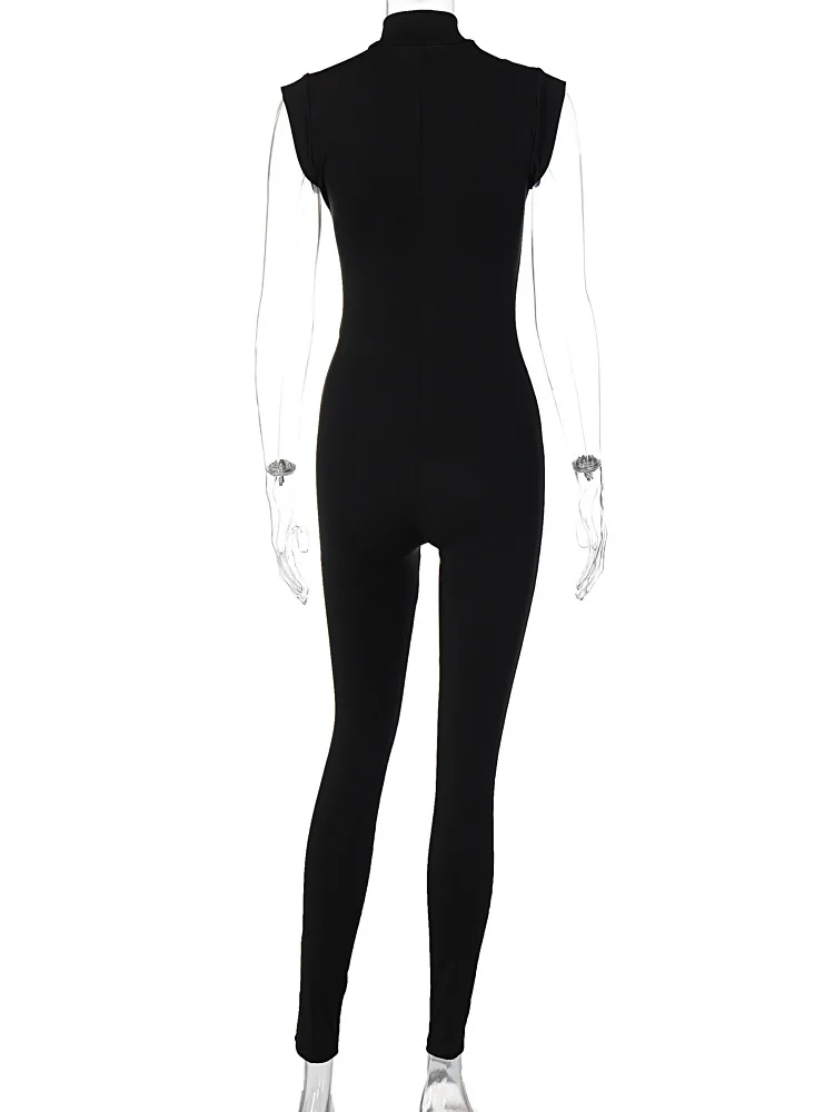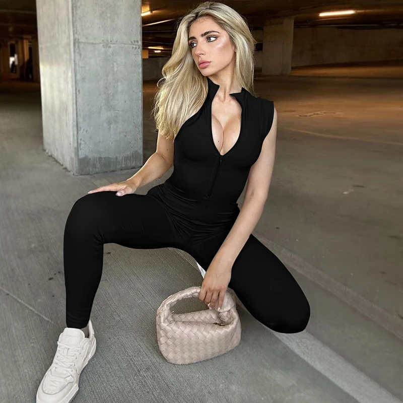 Women Fashion Sleeveless Zipper Neck Sexy Bodycon One Piece Jumpsuit 2023 Summer Streetwear Party Gym Romper Overalls